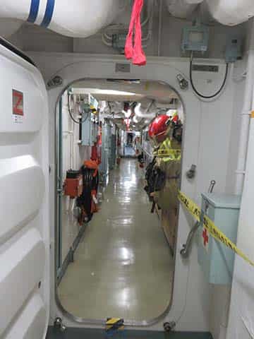 事前申し込みとは別の受付で名前と電話番号を記入し、整理券を貰い乗艦します。艦長をはじめ乗員の皆さんが出迎えてくれました。