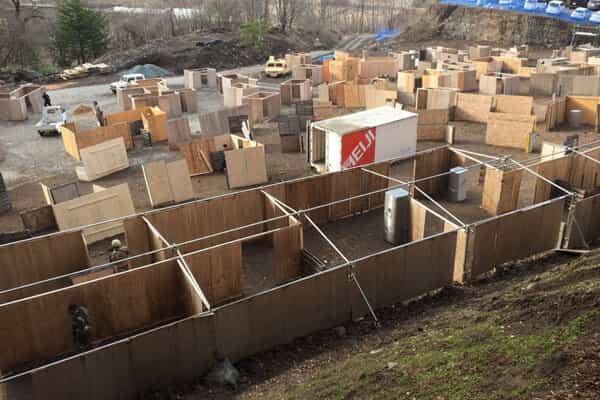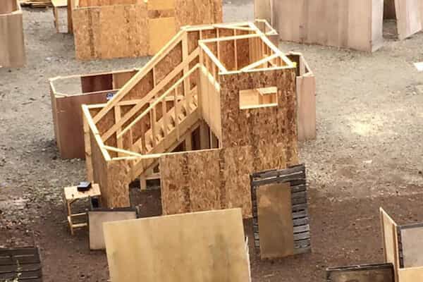 市街地のCQBをイメージしたフィールドでした。べニアのシンプルな板に囲まれたキルハウスに入り、隠れ、慎重に。