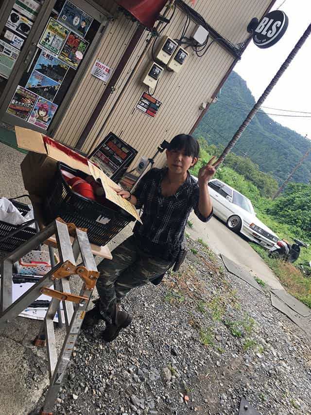 あら?可愛い顔したスタッフさんがピース