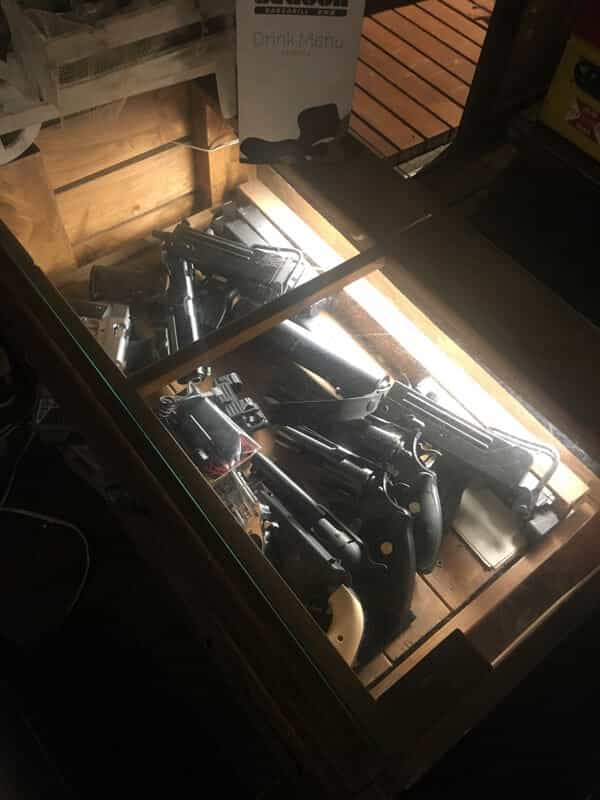 サバイバルゲーマーが経営するお店らしく店内には綺麗にエアガンが飾ってあり、オーナーに一声掛ければ触らせて貰う事も出来ます。