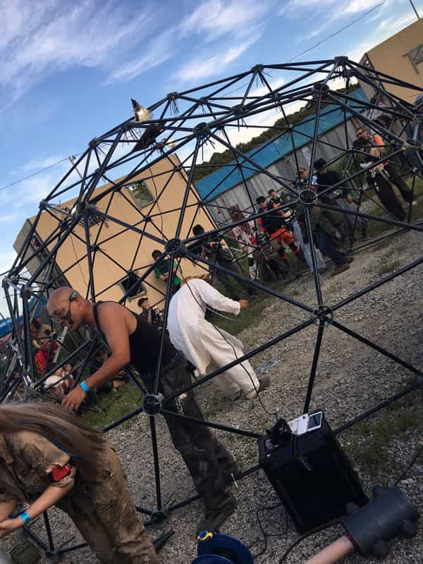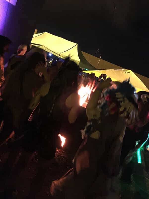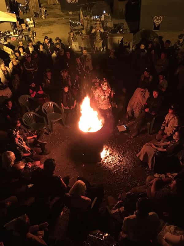 バーニングマンと言って藁で出来た大きな人形のお腹に参加者が想いを書いた紙を詰め込み炎で燃やす儀式が執り行われ神聖な空間が広がりました。