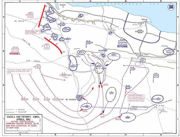 5月27日にロンメルが直に率いるアフリカ装甲軍がガザラ・ラインを迂回すべく前進を開始します。