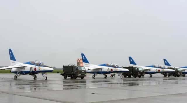 現在の主力戦闘機がF15で、F35も導入が始まっている戦闘機隊に対し、ブルーインパルスはT4練習機が使われています。