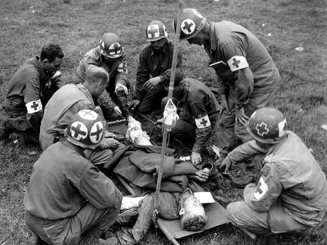 その延命措置が功を奏して後に野戦病院等に兵士が搬送されると、通常そこには本職の医療免許等を持った軍医が配置されており、外科的な処置を含め本格的な医療による治療が行われる事となる。