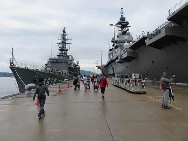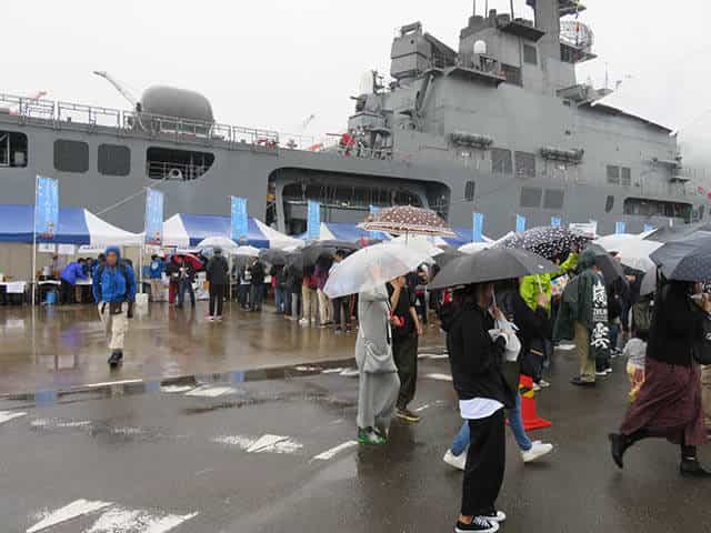 今回は関東地方各地が被災した台風での災害派遣に出動していた「かが」が呉に戻ってすぐイベントに参加でした。