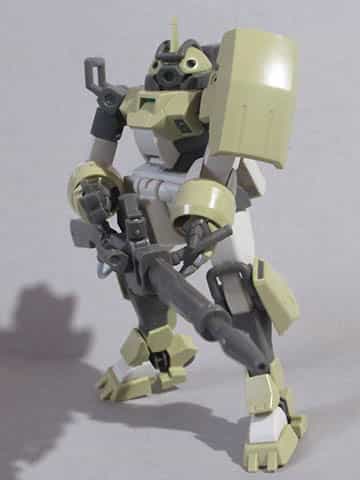 作中では学園の訓練用のモビルスーツであるデミトレーナーを頭部、脚部、バックパックなどを改修した機体で、大型のビームライフルは胴体に接続するという機構自体はこの機体専用ですが、ライフルの大部分はデミトレーナー用拡張パーツと同等のものとなっています。