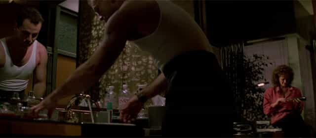 特に筆者がお勧めしたい射撃シーンは、屋上から飛び降り爆風で煽られながら、ホースを身体に巻いて飛び降り、ビルに侵入する為に窓をベレッタM92Fで撃ち抜き、最後のラストシーンでは機転を活かし、背中に仕込んだベレッタでハンスを射殺すると、彼の租の場の機転を活かした?運任せの戦い方に、タフな男の姿が見え傷つきながらも戦うそんな姿に惹かれたものです。