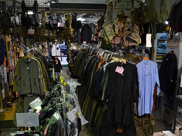 お店の前にはミリタリー系の服や装備等が多数展示されていて、興味惹かれてふらりと入るとお店には結構人がいました。
