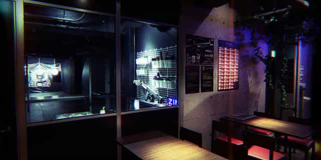 「大丈夫。ちゃんと飲み食いできるし色んな銃撃てるから安心しな。」とAさんは私の表情を見透かしたかのように言ってくれ、ドアを開けると、しゃれたテーブルやカウンターがあり、そこはシューティングバーGET@cityさんでした。