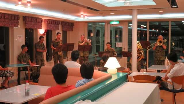「はくおう」では陸上自衛隊第13音楽隊による演奏も行われフェリーの設備がそのままなのでリラックスができる。