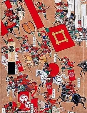 ■ 『関ヶ原合戦屏風』に描かれた井伊勢。ただし赤い母衣を背負った武者は使番であって井伊の赤備えの一員ではない。