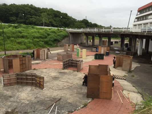 建物を中心にレイアウトが広がるフィールドで、建物内に入ってはNGなのが残念です。入って撃てれば面白かったなと思います。