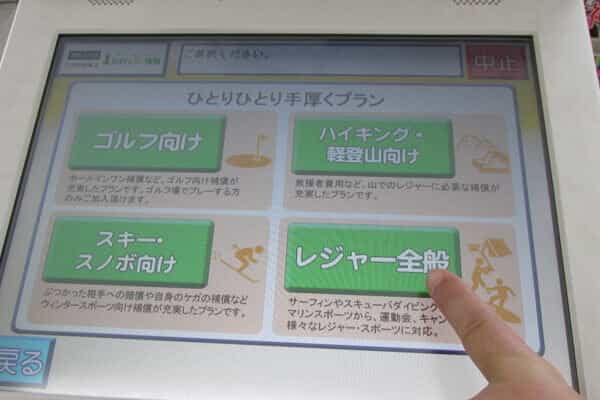 そして加入プランを念のために専用デスクに問い合わせしたのですが「レジャー全般」になります。