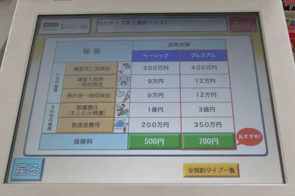 一日掛け捨てで、ベーシック(500円)とプレミア(700円)の二種類から選べます。