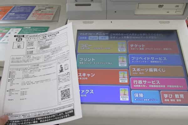 7. 手続きを完了してマルチコピー機から保険料支払票が出力されますので、レジで保険料を支払って完了です。