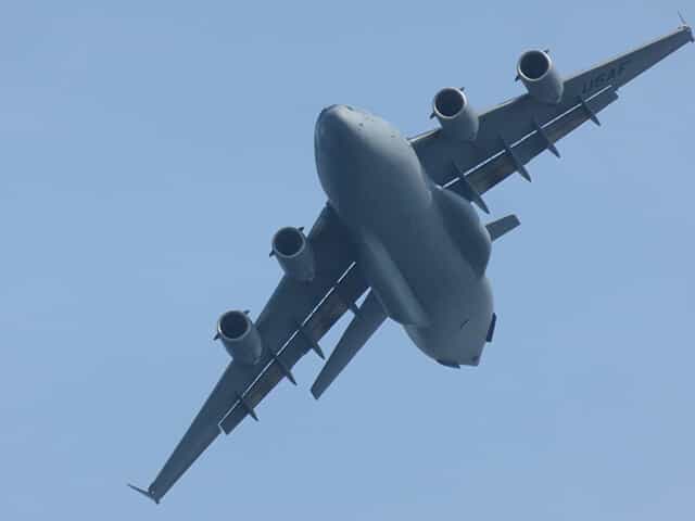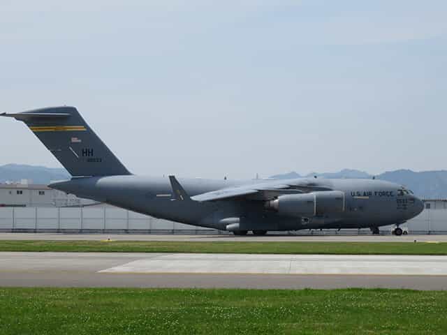 アメリカ空軍のC-17輸送機です。