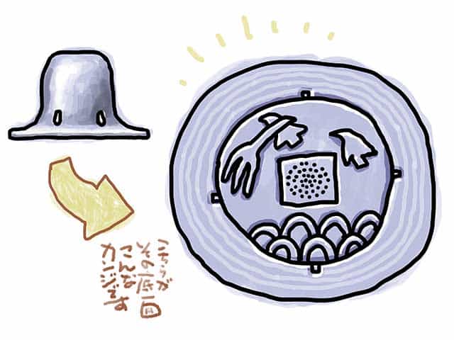 そして、縁起の良い意匠としてUFOの「宇宙航行の無事安全」を願い底面に刻んだのではないでしょうか。(宇宙人と縁起という組み合わせも何ですが…)