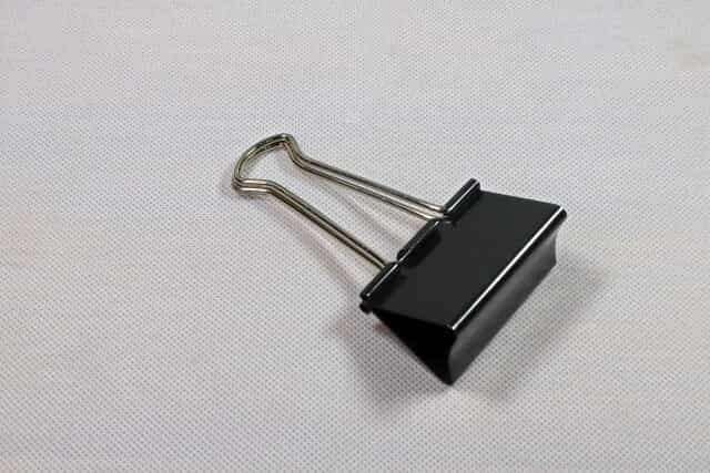 次に、小さめのクリップを3個使って蓋を留めたもの。