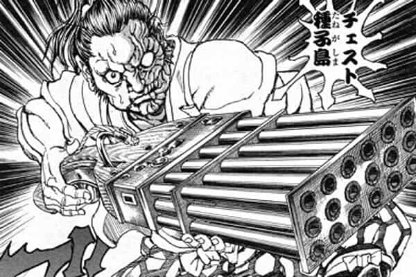ちなみにこれと同じ発想の銃が、架空のステージガンとして、日本の時代劇「三匹が斬る!」で悪代官が17連装火縄銃として使用され、他にも漫画で、山口貴由先生の作品「衛府の七忍」で「チェスト種子島」のセリフと共に18連装斉射銃が使用されました。
