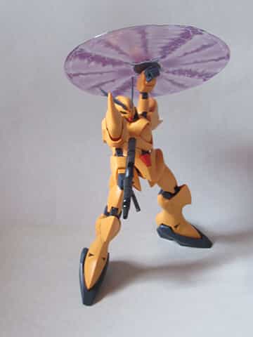 武器はビームライフルとビームサーベル、ビームローターが付属しますが、ビームローターがPET樹脂によるもので薄い成形ながら立体感が有り、ホログラムで仕上げられており実に印象的なものとなっています。