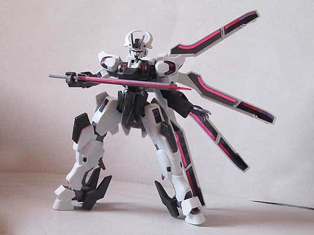 キットは色分けが非常によく出来ていますがバックパックの推進機部分の紫系のグレーのみ塗装が必要です。
