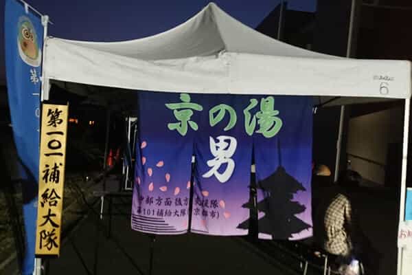 浴場となっているテントの入り口には暖簾があります。「京の湯」と書かれていました。