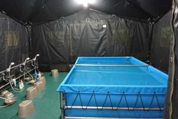 入浴支援には陸上自衛隊の野外入浴セット2型が使われました。