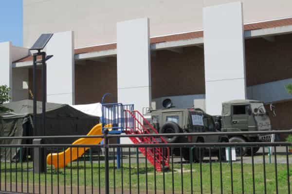 そこに自衛隊の車輛とテントが並んでいます。