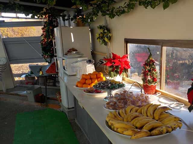 ・テントシート屋根のあるセーフティに4人掛けのテーブルが25台