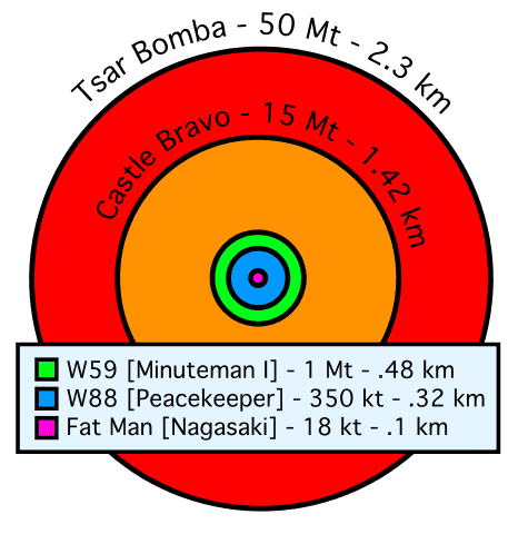 因みにアメリカが開発・実用化した最大の威力を持つ核兵器は「B41」水素爆弾であると言われており、こちらは約25メガトン相当で「ツァーリ・ボンバ」の理論値の約四分の一だ。