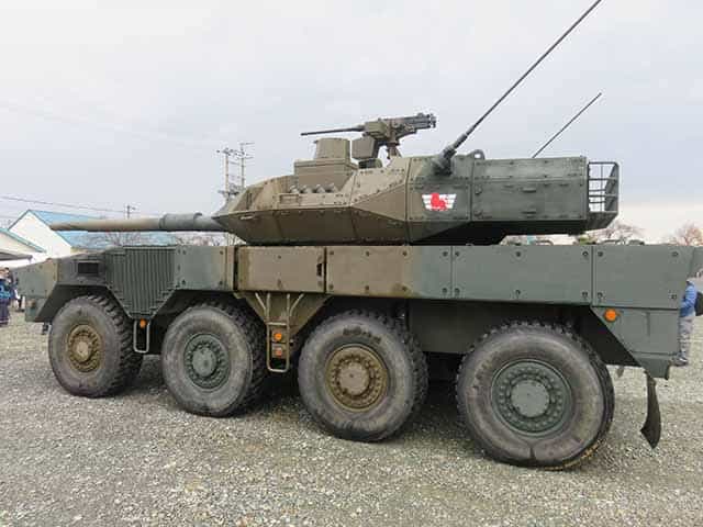 続いて機動戦闘車2両が偵察行動として進入、敵前で蛇行しながら105ミリ砲を撃ちます。