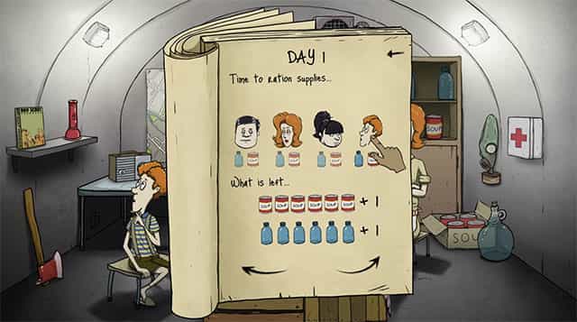 家族と共にシェルターに逃げ込んだ後、プレイヤーは家族をどう生かしていくのかを考え、また必要な食糧をどう消費し家族に配らなければいけないのかと悩ませ、またアイテムを手に入れる為に誰を外へと探索に向かわせるのかと、様々な選択を迫られていくゲームでもあるのです。そして何日生きられるのかと、無事に家族を活かし様々な困難に立ち向かわなければいけないと、核戦争後のシビアな状況を体験できる今作。