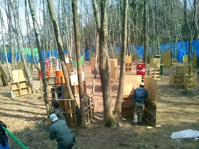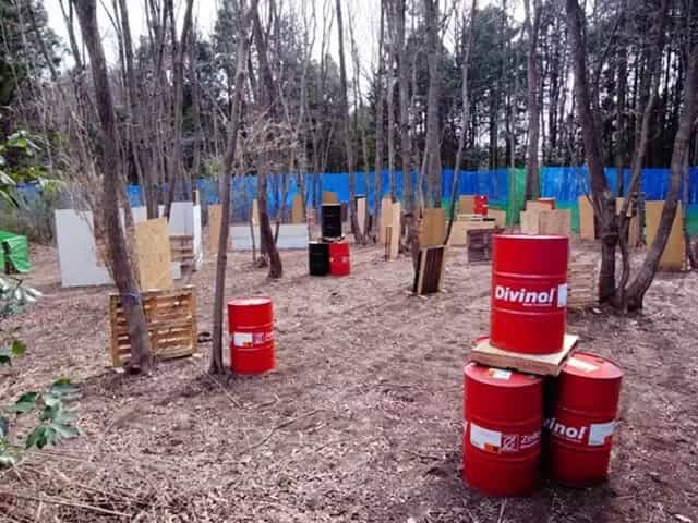 屋外には最大10人程度の利用を想定した森林フィールドがあります。少々狭いですが、最大射程は40m程度あり、ライフルからハンドガンまで使えます。