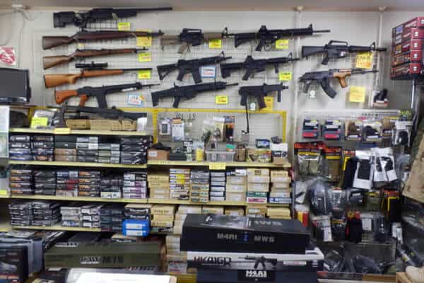 店内に入ると平日にも関わらずにそこそこ混んでいて、とにかく驚いたのが店内に様々な銃器が置かれていました。