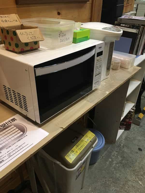 受付横にはレンジも給湯器も備品の設備はバッチリです。