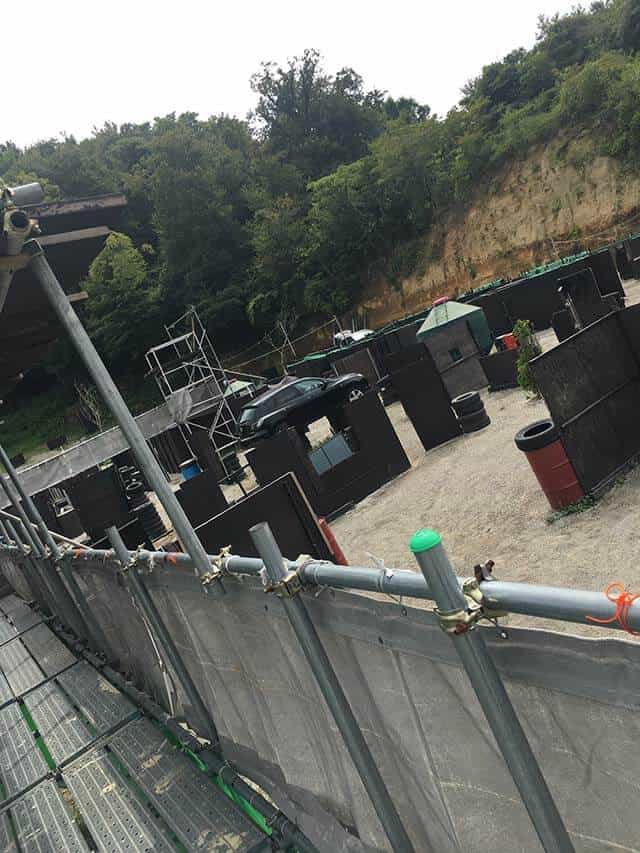フィールド画像の右側を見渡すと板のバリケードが目立ちますが、その中に給水塔や積み上げられたタイヤの上に車が乗っていたりして足元を弾が跳んでくるなんて事も多々あります。