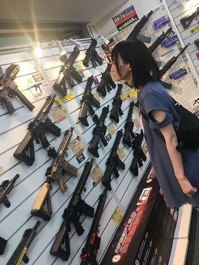 色々なエアガンを見つめて何だか子供みたいですね笑