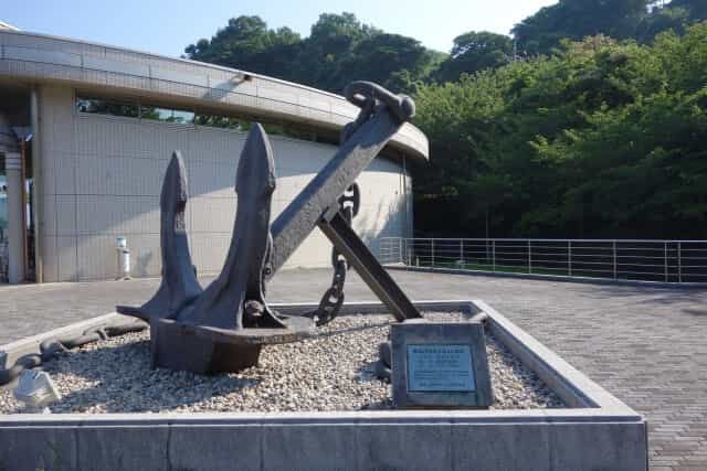 入口には艦首錨及び錨鎖が設置されていて、記念館に向かい右の丘には屋外展示物としてスクリューや14cm副砲や艦首先端部があり、慰霊碑も建てられています。