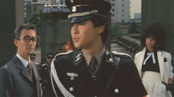 旧ドイツ軍かぶれの不良学生の集団に倒されてしまった黒岩先生……でも爆発の中から復活し、ヘルメットと防弾スーツで武装し、手榴弾や44マグナムなどで不良達を殺戮し、奪ったバイクで薙ぎ倒していくなどの、横山やすしとは思えない様な、最後のアクションシーンは、この映画の最大の見せ場とも言えます。
