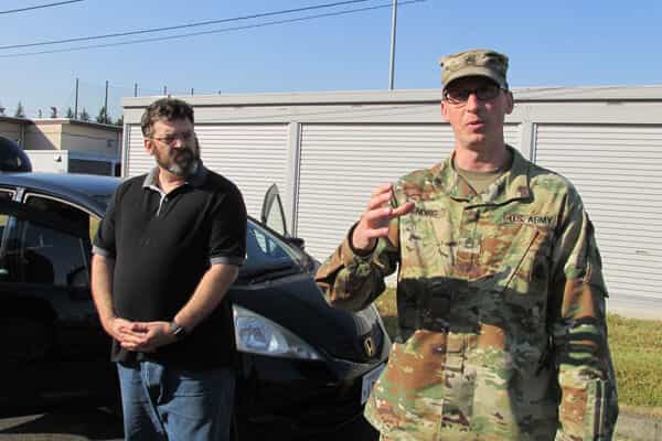 防空壕を抜け座間キャンプ内にある、旧帝国陸軍士官学校時代の史跡をリース軍曹のガイドによって巡ります。