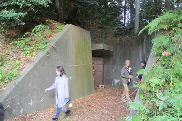 ちょっとした小山の下にコンクリートで作られた壕で、自然の地形を利用して爆撃から逃れる仕組みになっております。