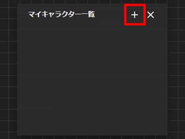 すると、「マイキャラクター一覧」というポップアップウィンドウが出ますので、右上の「+」マークをクリックします。