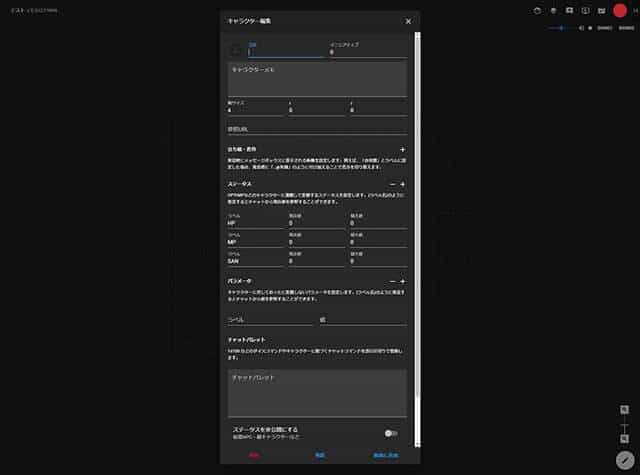 すると、キャラクター編集画面が出ますので、名前やHPなどを入力します。
