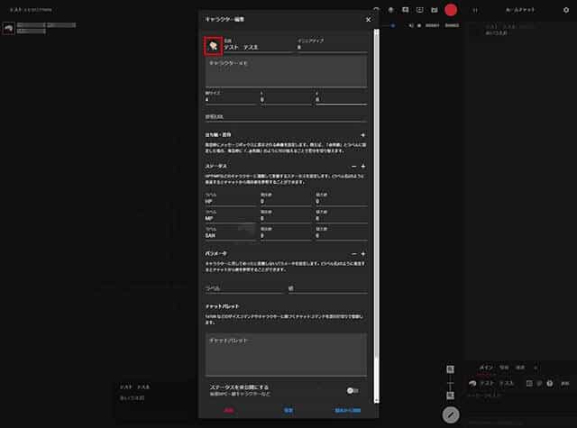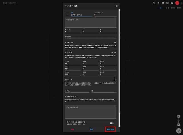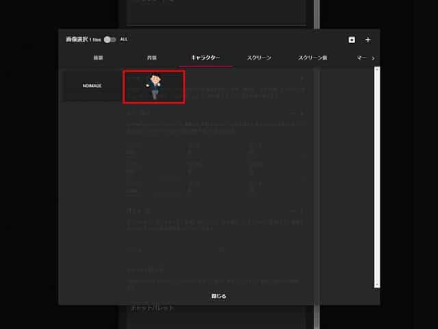 この状態でキャラクター編集画面の外の領域をクリックするとキャラクター編集画面が閉じられて、