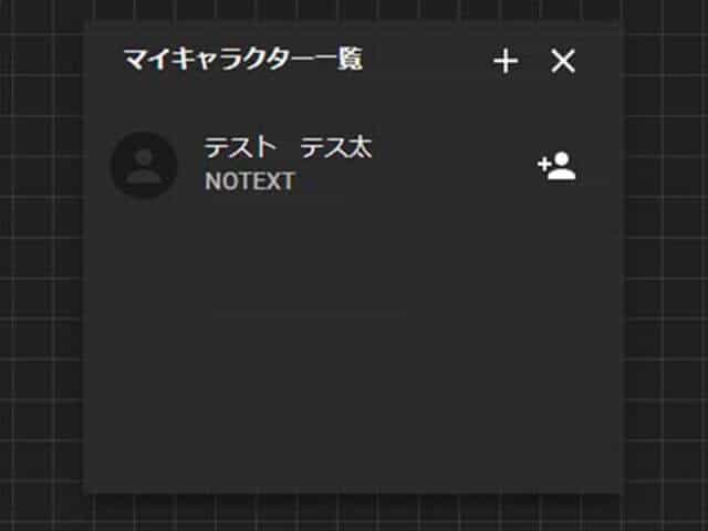 キャラクター名の右側にある、人型のアイコンをクリックすると、画面上(ココフォリアではこの画面を「盤面」と呼びます)にキャラクターのアイコンが追加されます。