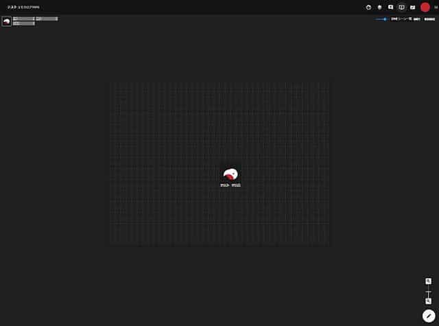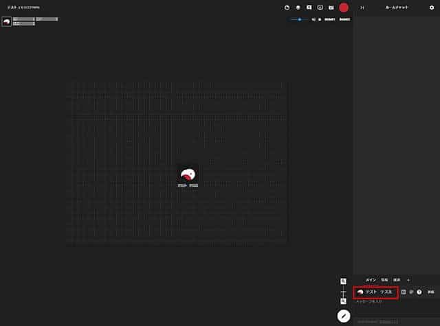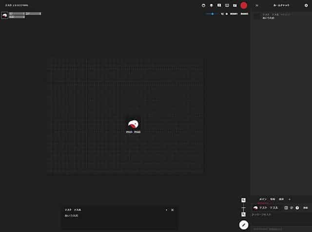 ココフォリアでTRPGを遊ぶ場合、プレイ前にココフォリアのセッションルームのURLが共有されますので、まずはそこをクリックします。すると、このような画面が表示されます。今回は最低限のものしか用意していませんが、GMによっては背景画像やルール説明用のアイコンが置かれていることもあります。