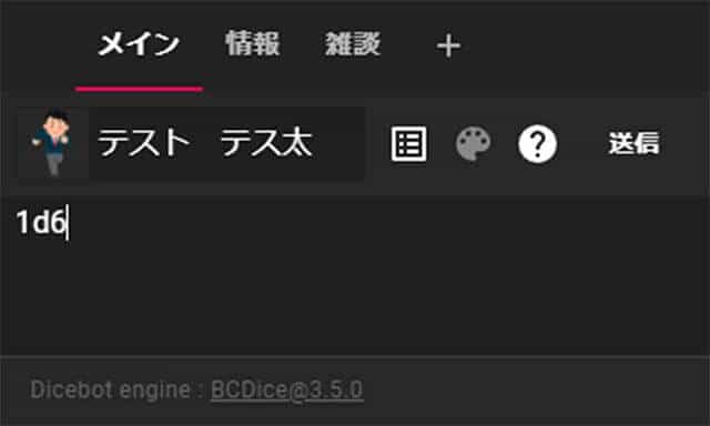 例えば、6面のサイコロを1つ振りたい場合は「1d6」と入力します。