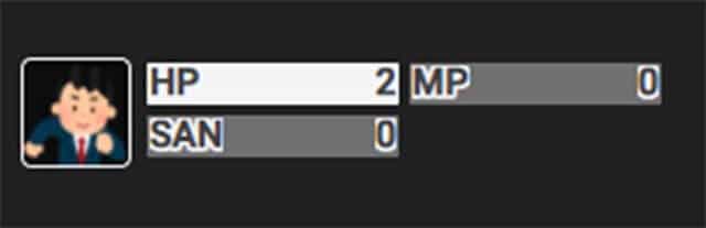 ステータスに「HP」「MP」「SAN」とありますが、これはクトゥルフ神話TRPGで使うステータスであるため、他のTRPGで使用する場合は遊ぶゲームに合わせて書き換えましょう。