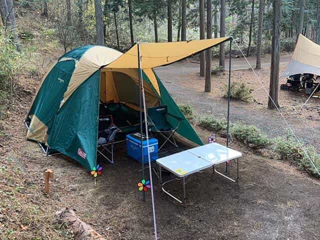 実際に使ってみるととても便利で、屋根のサイズは小さいものの十分にテーブルと椅子を広げることができ、雨や日光除けになります。さらにタープを使用すると別途発生するキャンプ場がありますが、そんな料金も必要ありません。