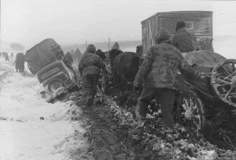 ティーガーとパンターを集めた期待のベーケ重戦車連隊でしたが雪解けにより泥が広がる大地が重い戦車の足を引っ張った。